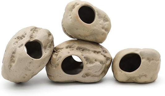 Plecoceramics Aquarium Ceramic Decorations Cave Betta Stone Decor - Aquarium Fish Tank Hideway Decor for breeding Cichlids Plecos Betta Toys Hideout (Leaves)