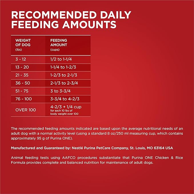 - Purina ONE chicken and rice dog food offers a microbiome balance and a SmartBlend of high-quality ingredients, including prebiotic fiber for dogs, to help your dog live his best life