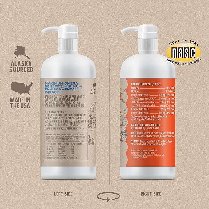 Grizzly Pet Products Salmon Plus Omega 3-6-9 Food Supplement for Dogs and Cats, 32 Ounce