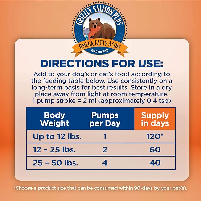 Grizzly Pet Products Salmon Plus Omega 3-6-9 Food Supplement for Dogs and Cats, 8 Ounce