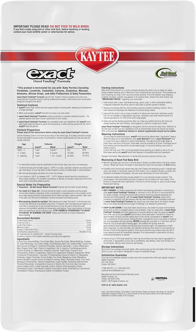 - Exact Hand Feeding Formula Has Compatible Tastes And Ingredients With Exact Conversion And Exact Adult Daily Diets To Help Reduce Digestive Upsets During Weaning