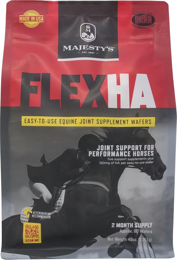 - Contains one (1) bag of Majesty's Flex HA Wafers Superior Performance Horse / Equine Joint Support Supplement. Flex HA Wafers are for performance horses, which have combined five superior support supplements plus 150mg of HA to produce a superior, easy-to-use supplement wafer that increases range of motion and reduces inflammation