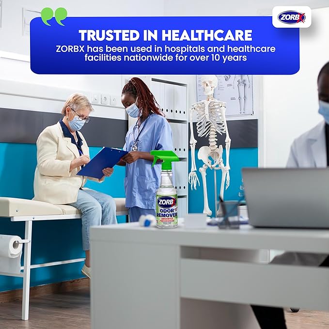ZORBX Unscented Odor Eliminator for Strong Odor 16 Fl Oz - Used in Hospitals & Healthcare Facilities - Advanced Trusted Formula, Fast-Acting Odor Remover Spray for Dog, Cat, House & Carpet