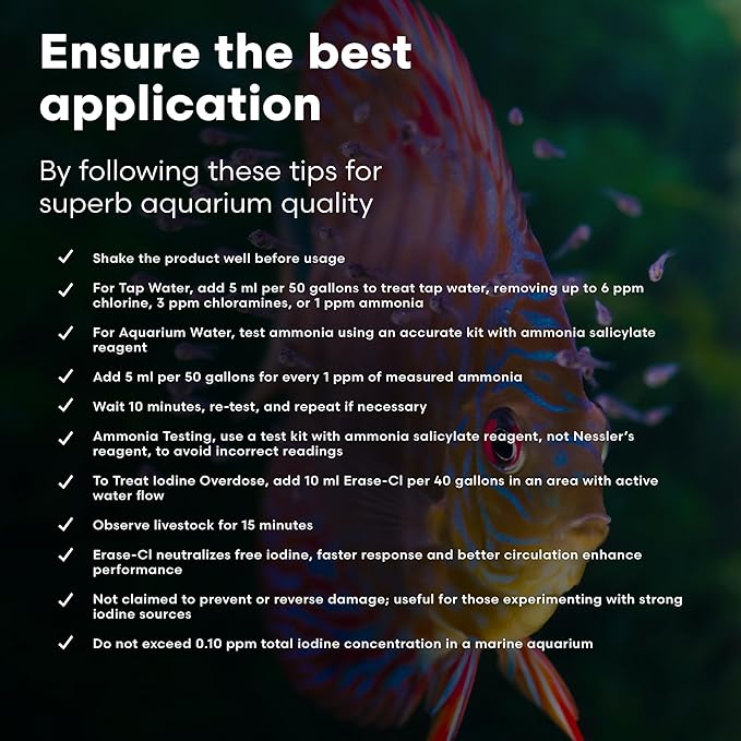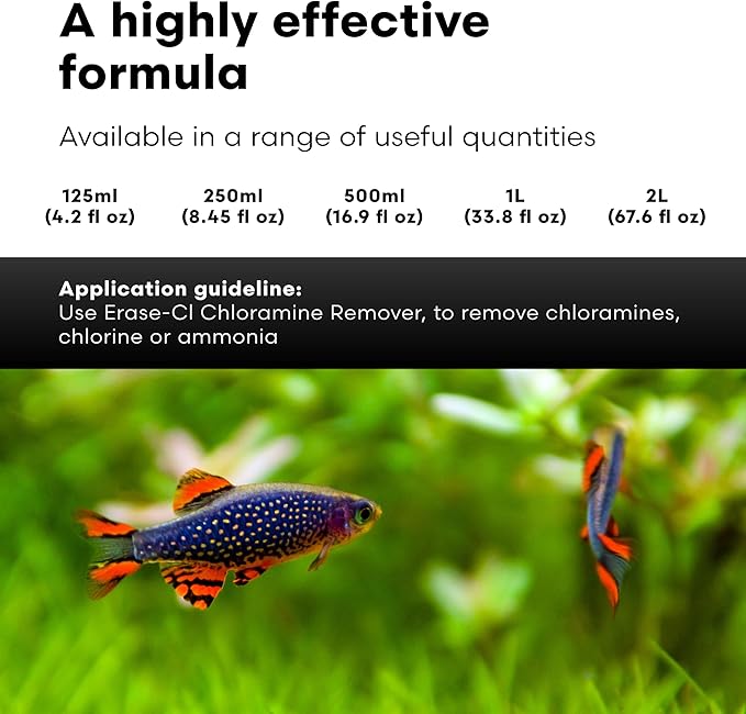 - BALANCED AQUARIUM MAINTENANCE - The Erase-Cl is an automatic ammonia, chloramine, and chlorine remover that makes tap water immediately safe for aquarium fish, invertebrates and live plants. It is also safe to use in marine, reef or freshwater aquariums in emergencies to neutralize ammonia spikes