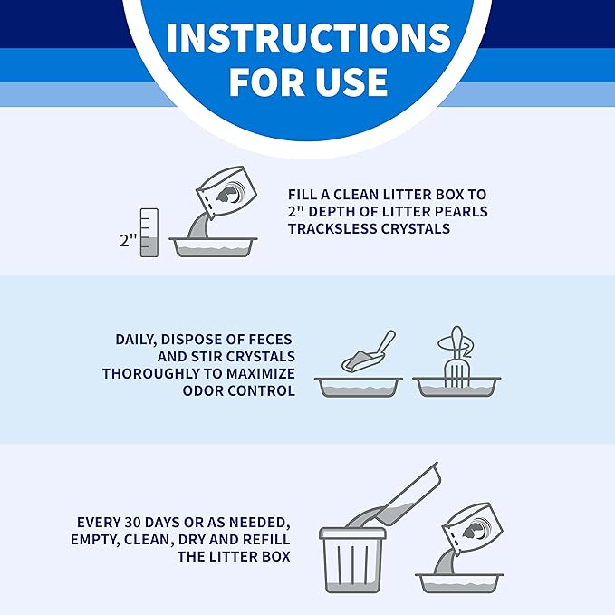 - Odor Control with Easy Maintenance; Non-clumping Tracksless Litter Pearl crystals absorb odor-causing liquid and dry feces, making litter box maintenance easy and your litter box smell cleaner, longer