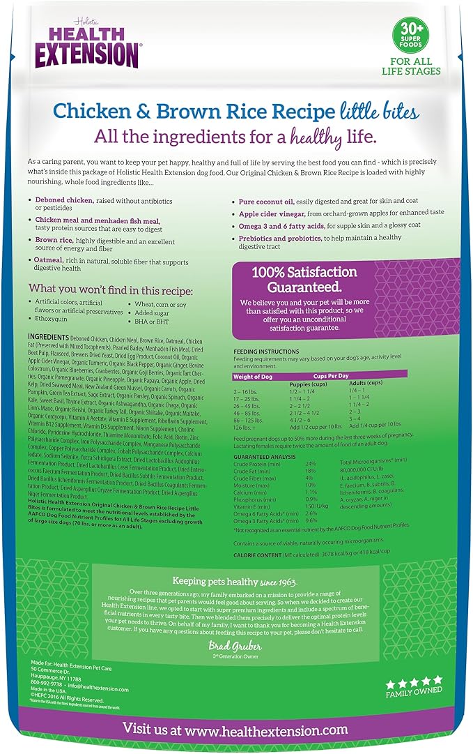 Health Extension Little Bites Dry Dog Food for Small Breeds, Chicken & Brown Rice Recipe, with Probiotics & Superfoods for Digestion & Coat Health, 10 lb Bag (Pack of 1)