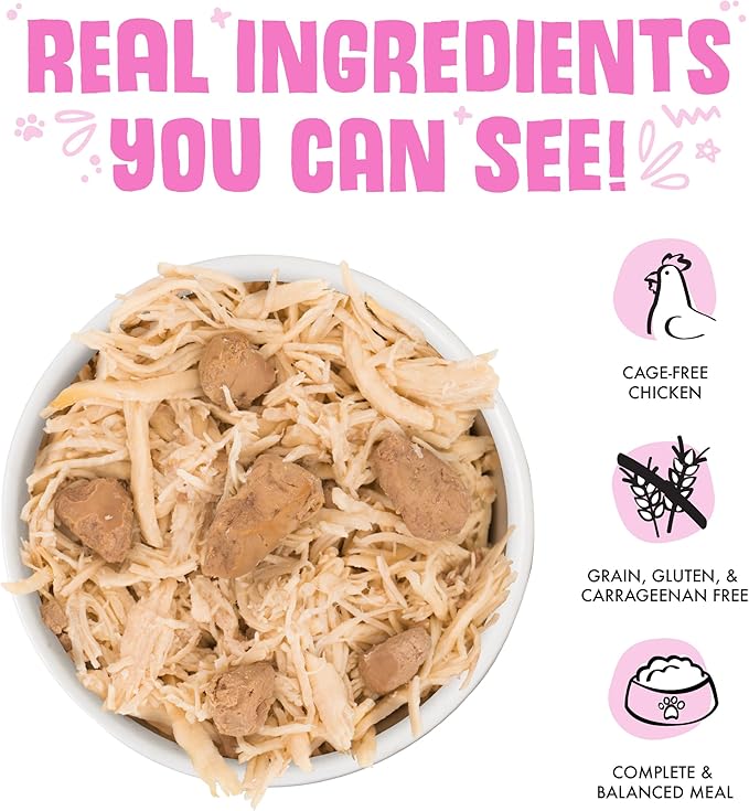 - Amazon Livin' (5. 5oz cans, pack of 24) Featuring thinly shredded, cage-free boneless, skinless white-meat chicken and chicken liver in gravy. Chunks of liver are sure to entice even the pickiest cat!