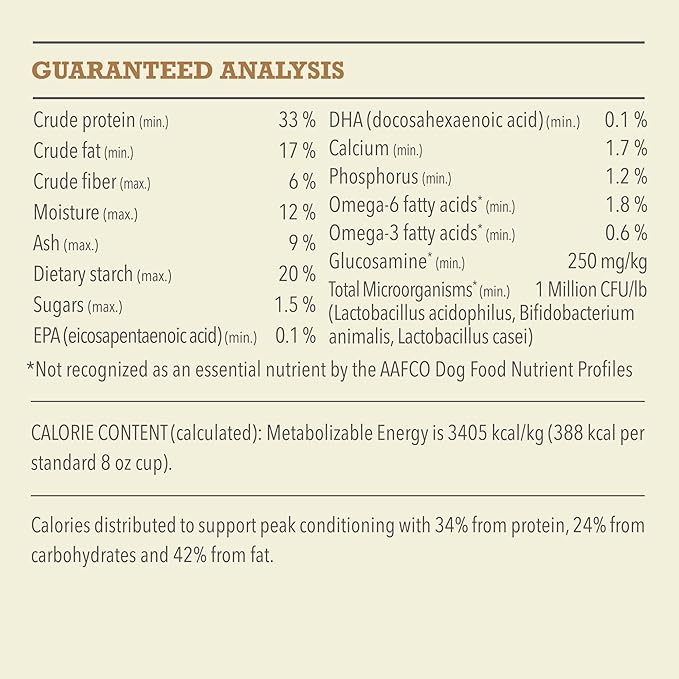 - Protein-rich animal ingredients are balanced with wholesome fruit and vegetables for nutritious, high-fiber dog food with probiotics to support healthy digestion