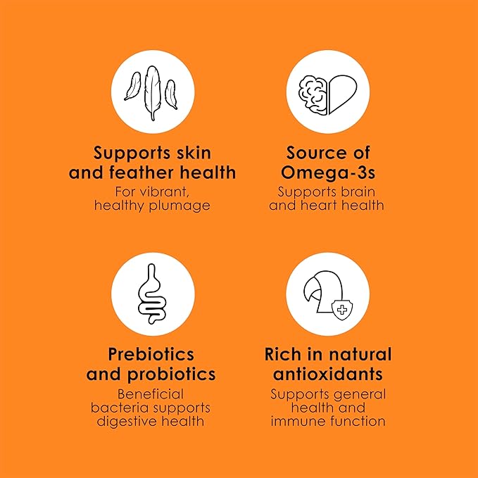 - SUPPORTS SKIN AND FEATHER HEALTH for a more vibrant plumage