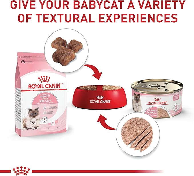 - SUPPORTS MOTHER & BABYCAT HEALTH: Royal Canin Mother & Babycat Ultra Soft Mousse in Sauce Canned Cat Food is a unique nutritional solution that supports mother cats (pregnant or nursing), and the healthy growth and development of newborn kittens (1-4 months)