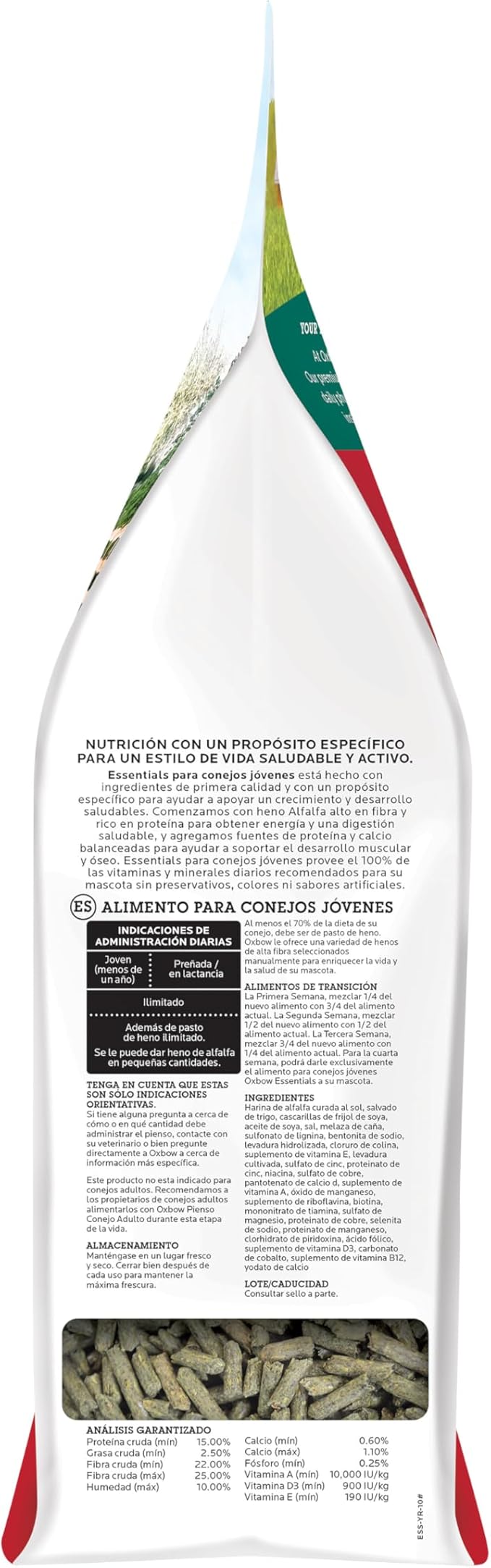 - YOUNG RABBIT FOOD: Immerse your pet in a world of nutrition with our Essentials Young Rabbit Food; Fortified with vitamins and minerals, our recipe comprises high fiber and protein-rich alfalfa hay, providing ample energy and supporting healthy digestion