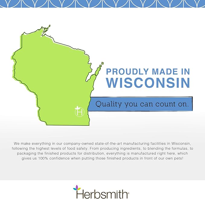 - MADE IN THE USA – This supplement was created by holistic veterinarian Dr. Chris Bessent, who owns and operates Herbsmith’s two facilities in Wisconsin. It’s quality you can trust from a veterinarian with over 30 years of experience.