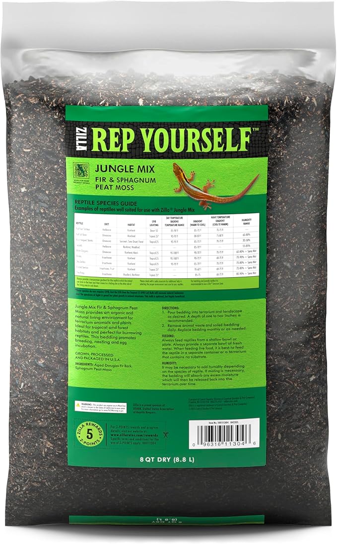 Zilla Reptile Terrarium Bedding Substrate Jungle Mix, 8 Quart