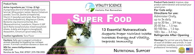 Super Food for Cats | High Potency Multi-Vitamin and Mineral Supplement | Increases Energy and Vitality | 100% Natural (60g)