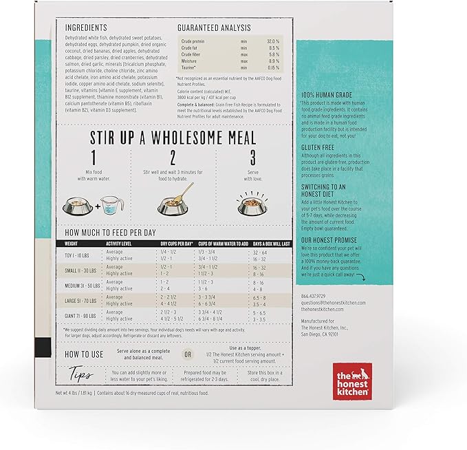 The Honest Kitchen Dehydrated Grain Free Fish Dog Food, 4 lb Box
