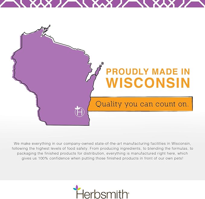 - MADE IN THE USA – This supplement was developed by holistic veterinarian, Dr. Chris Bessent, who owns and operates Herbsmith’s two facilities in Wisconsin. It’s quality you can trust from a veterinarian with over 30 years of experience.
