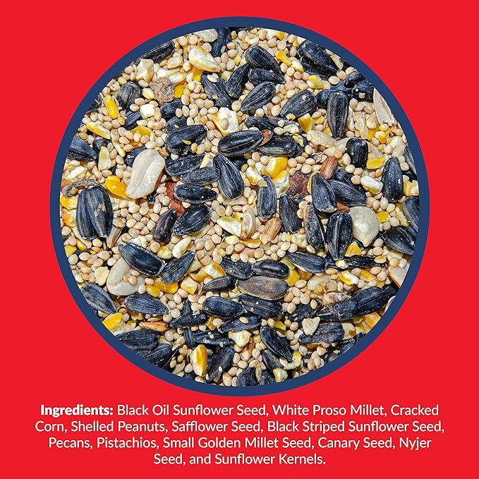 - Nutritional mix of corn, nuts, kernels, and seeds for wild birds