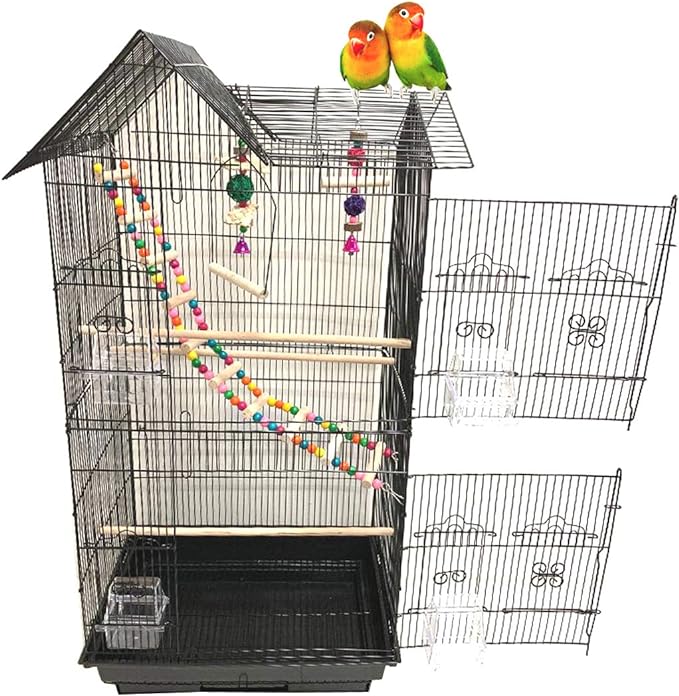 38-Inch Double Roof Top Large Flight Bird Cage with Toys Climbing Ladder Side Nesting Box Doors for Cockatiels Sun Parakeets Conures Aviary Budgie Finch Lovebird Canary Pet Bird Travel Cage