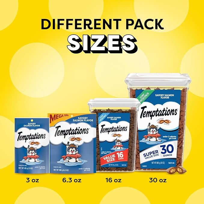 Temptations Classic Crunchy and Soft Cat Treats, Savory Salmon Flavor, 3 oz. Pouch (Pack of 12)