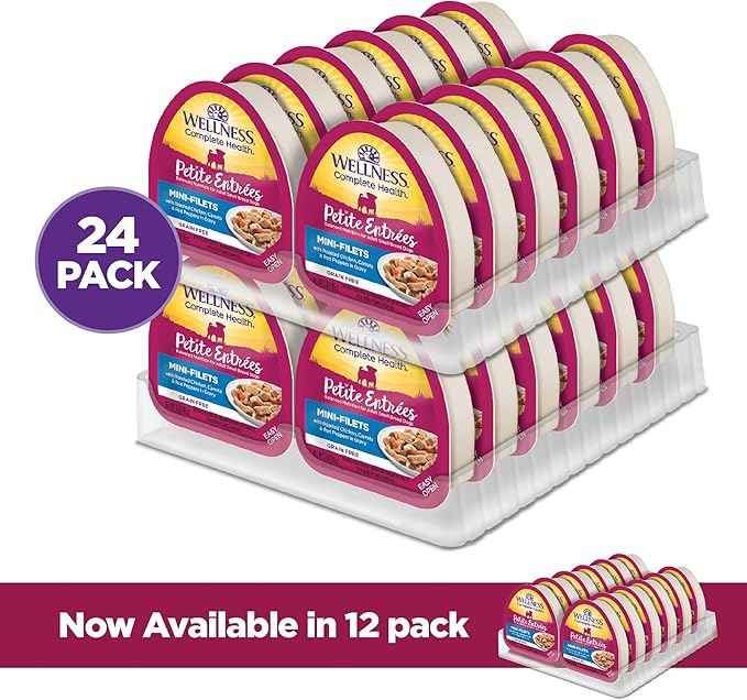 Wellness Petite Entrees Mini Fillets Grain Free Natural Wet Small Breed Dog Food, Roasted Chicken, Carrots & Red Peppers, 3-Ounce Cup (Pack of 24)