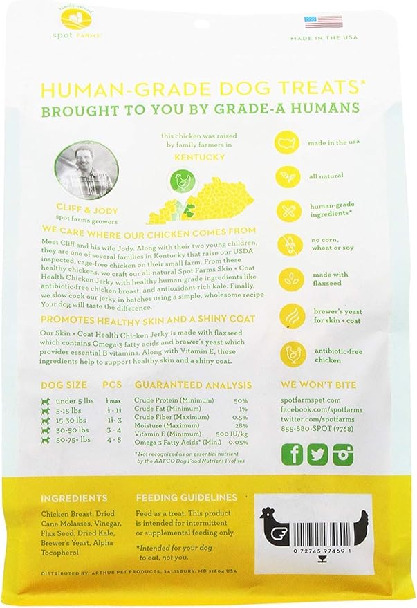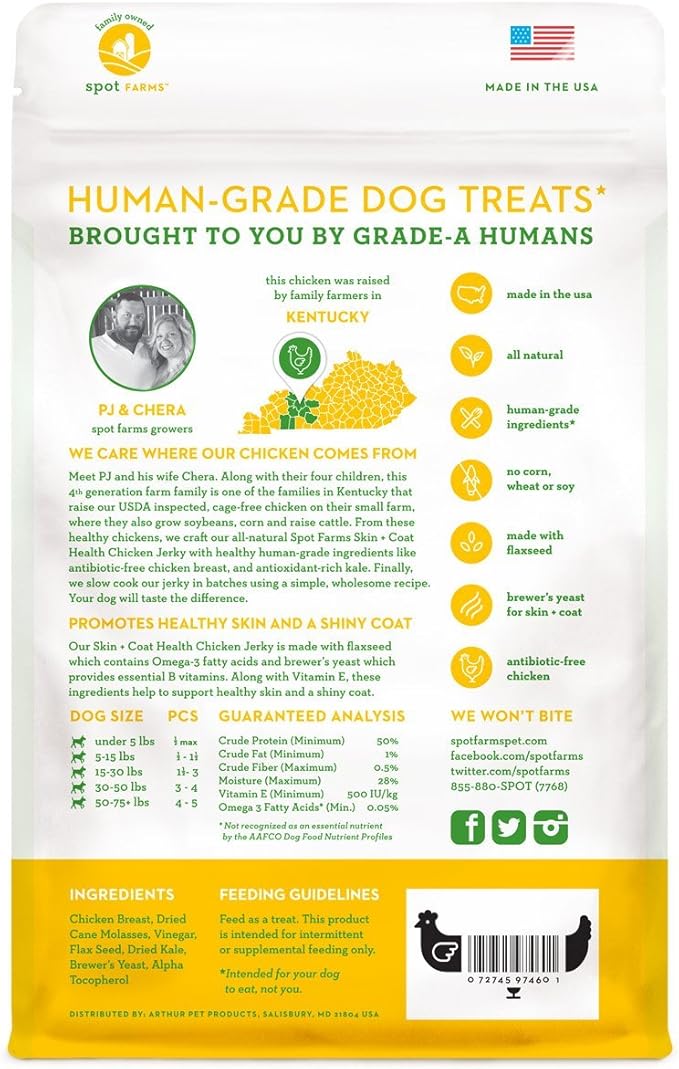 Spot Farms Chicken Jerky Healthy All Natural Dog Treats Human Grade for Skin and Coat 12 oz