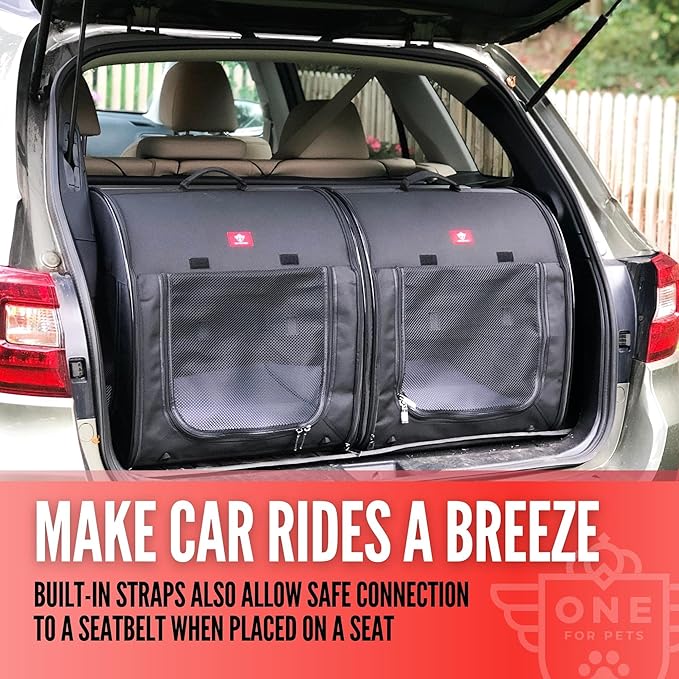 - Travel Carrier: Built-in straps that allow safe connection to a seatbelt; Easy to set up and fold flat in seconds; Pad cover is removable and washable