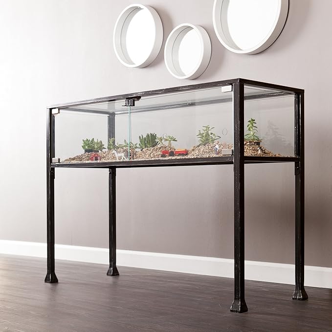 - Overall: 42.5" W x 15.25" D x 30" H; Tabletop: 42" W x 14.5" D; Terrarium space: 40.75" W x 13.25" D x 9" H; Clearance: 39.25" W x 12" D x 19.75" H