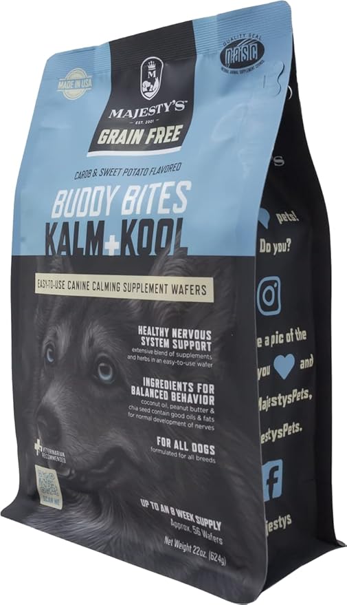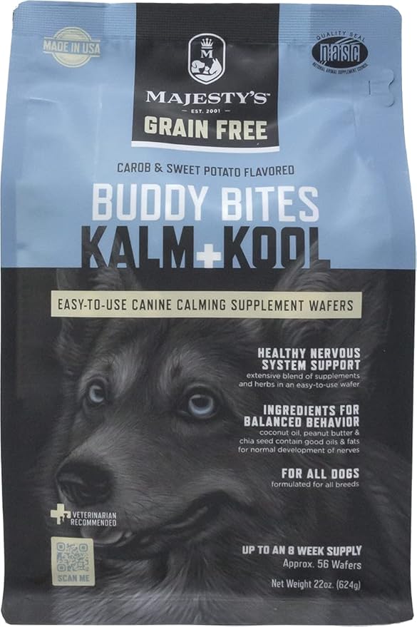 Majesty's Grain-Free Buddy Bites Kalm and Kool Wafers for Medium / Large Dogs - Superior Nervous System Support Supplement - Carob and Sweet Potato Flavored - 56 Count (Up To 8 Week Supply)