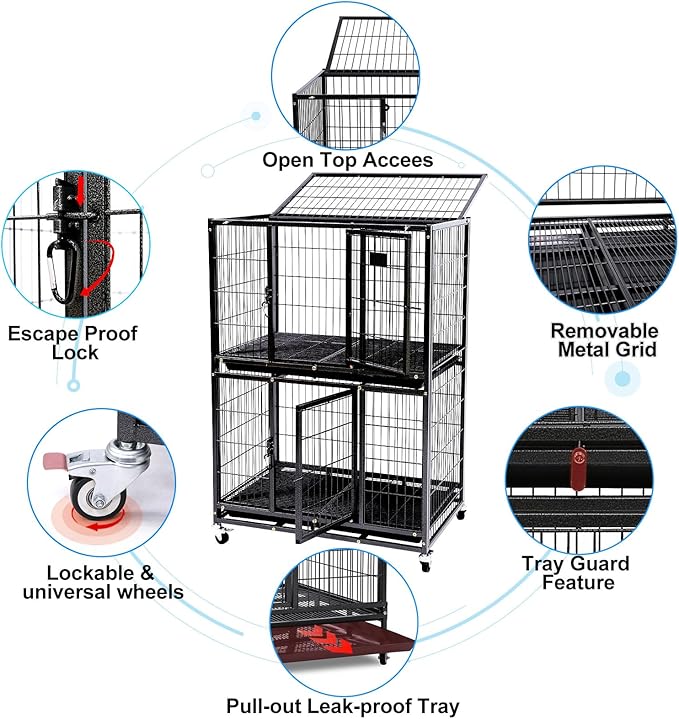 - More Convenient with Multi-Door Design: This dog cage for small dogs features front door and a top door. The top door allows for easy interaction and training, while the front doors facilitate convenient entry. Those design helps build a close bond with your pet effortlessly