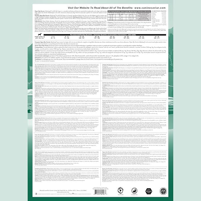 Canine Caviar - Open Sky: Duck & Teff Alkaline Dry Dog Food, Limited Ingredients, Gluten-Free, Based on Science & Research, Veterinary Alternative Diet (22 Pound Bag)