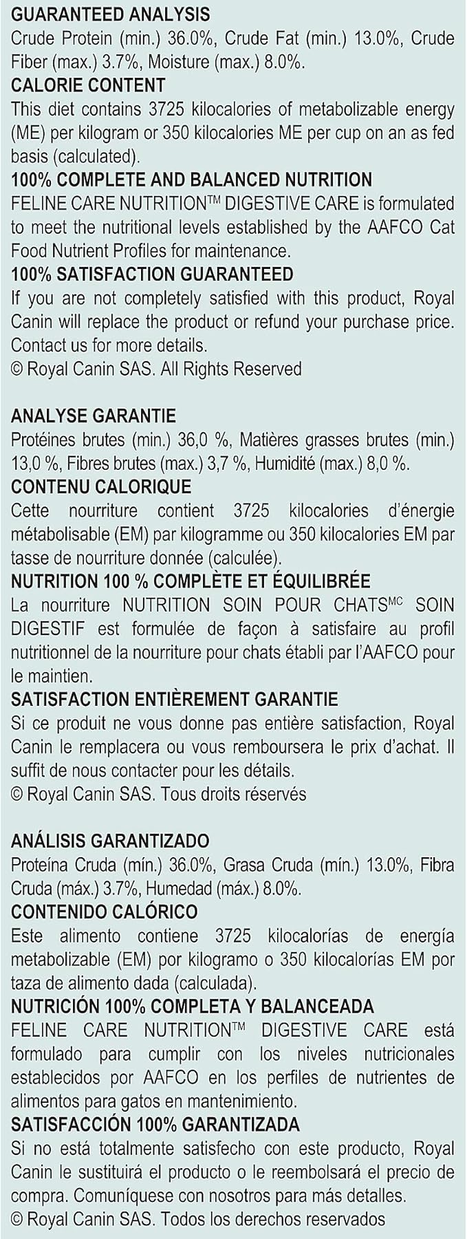 - SENSITIVE STOMACHS: Royal Canin Feline Care Nutrition Digestive Care Cat Food Dry Diet is formulated for adult cats with sensitive stomachs