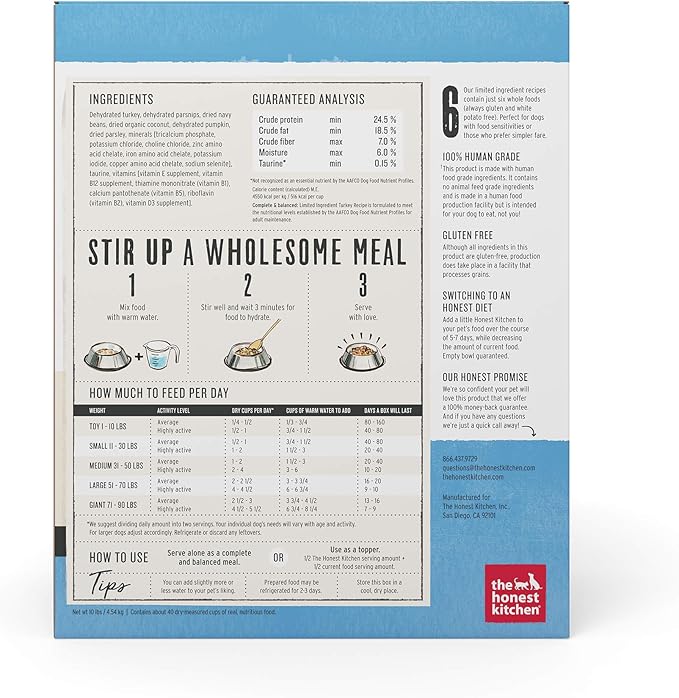 The Honest Kitchen Dehydrated Limited Ingredient Turkey Dog Food, 10 lb Box