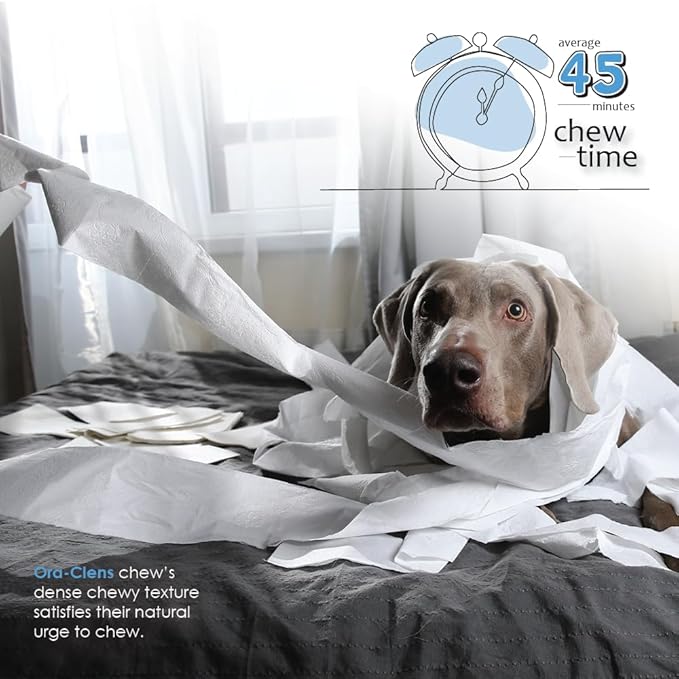 - ๐งผ Effective Cleaning: Ora-clens Oral Hygiene Chews formula features a blend of the enzymes Lactoperoxidase and Glucose Oxidase, which help prevent plaque and tartar build up as well as promote clean teeth and fresh breath. With the enzymes coated onto the chews, your dog will gain benefits faster. Oral Hygiene Chews also feature an abrasive texture, which help scrub your dog's teeth while they chew.