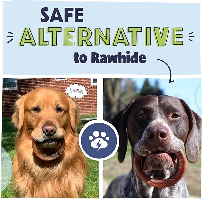 Pawstruck All-Natural 4" Bully Stick Rings for Dogs - Rawhide-Free, 100% Beef, Single Ingredient Dental Chew Bones - Fully Digestible, Low Odor - 3 Pack - Packaging May Vary