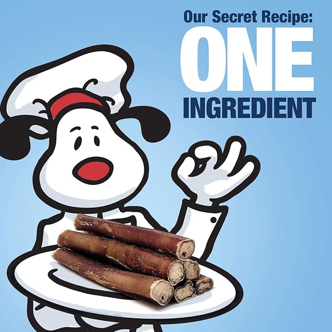 - Single Ingredient - Our all natural bully sticks are made of 100% beef with no chemicals or additives
