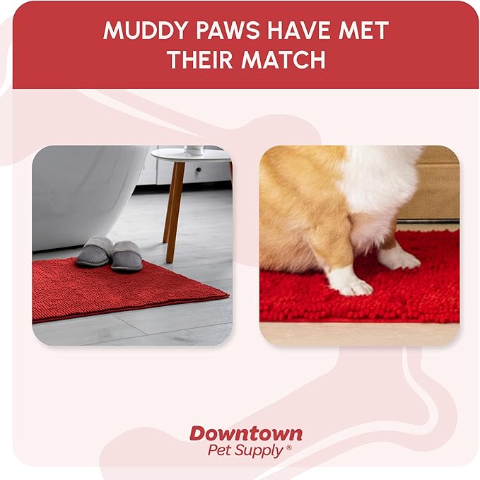 My Doggy Place Microfiber Dog Mat for Muddy Paws, 31" x 20" Red - Absorbent and Quick-Drying Dog Paw Cleaning Mat, Washer and Dryer Safe - Non-Slip Rubber Backed Dog Floor Mat, Medium