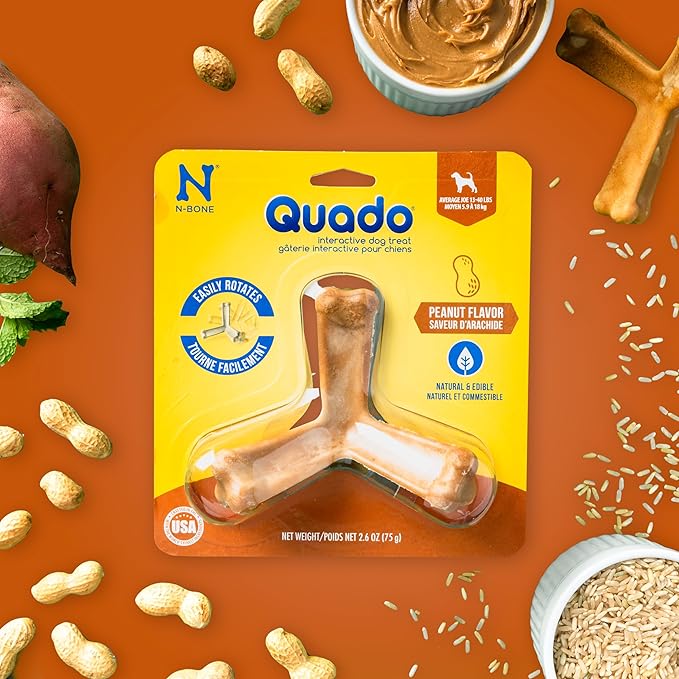 N-Bone Quado Interactive Chew, Peanut Flavor, Average Joe, 2.8oz, Natural, Medium (Pack of 1)