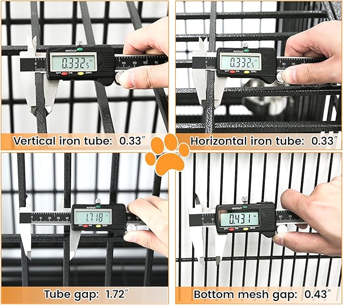 - Easy to Clean: Includes two removable metal floor grids and leak-proof tray, Grids with 0.5" spacing to protect your dog’s paws while allowing waste, food, and hair to fall through—keeping the dog cage clean and your pet elevated. The slide-out, leak-proof tray can be placed underneath or inside the drop crate for added foot comfort and easy cleaning