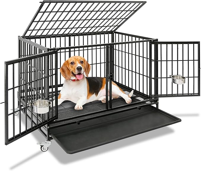 - Extra Divider and Two Stainless Steel Bowls: Comes with a free removable divider that allows you to split the 43 inch dog crate into two separate spaces or keep it as one large area—perfect for multi-dog households or growing pups. Also includes two stainless steel bowls for food and water, saving you the need to purchase bowls separately and making feeding more convenient