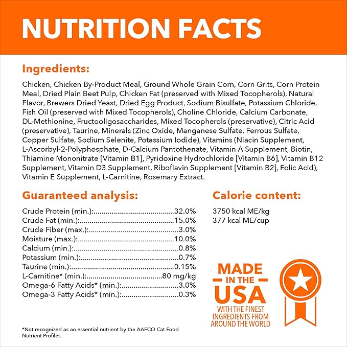 - Complete and Balanced for Adult Cats: 100% nutrition, 0% fillers, this dry cat food supports whole-body health with essential nutrients and is enriched with antioxidants for a strong immune system