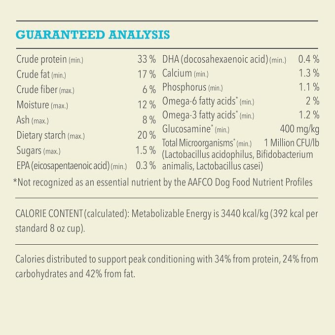 - High protein dog food recipe features 70 percent** animal ingredients and 30 percent*** wholesome fruits, vegetables