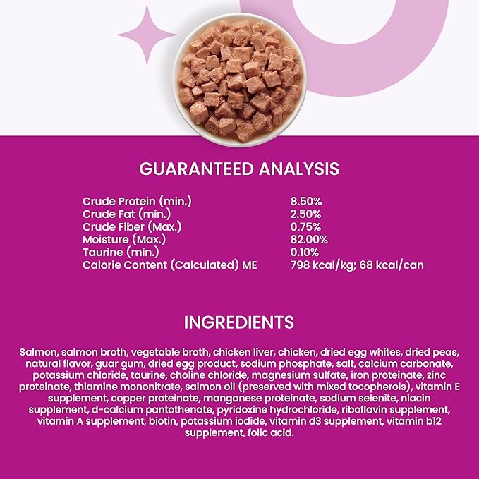 - Salmon is #1 Ingredient - Since the dawn of time, cats have loved their protein—so that’s why this dish is packed with delicious, succulent chunks of the good stuff: sustainably-sourced salmon.