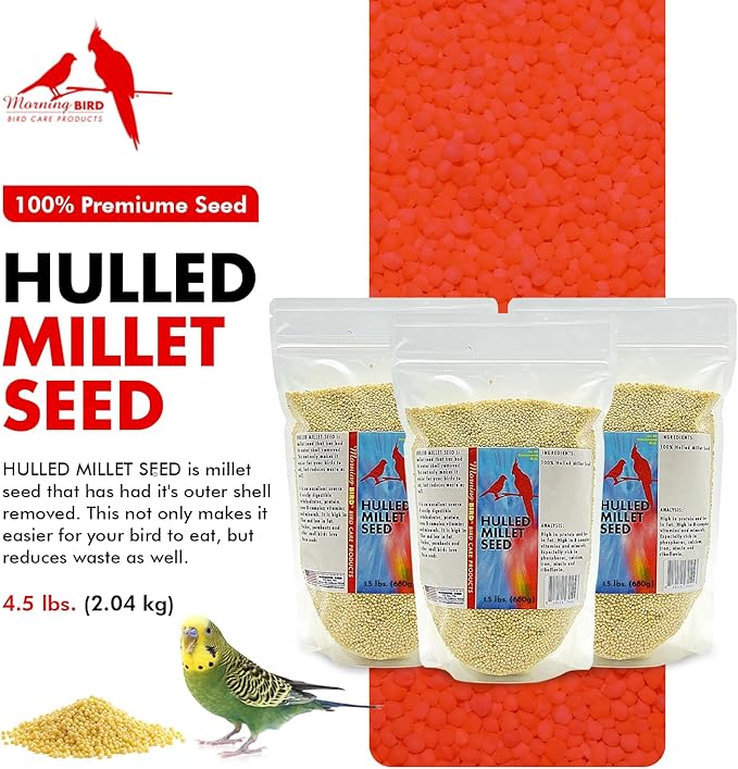 Morning Bird Hulled Millet – Nutritious Seed, Easily Digestible with High Fiber, Rich in Vitamins and Supplements for Birds, Ideal Bird Feed for All Bird Types, 4.5 lbs (3-Pack, 1.5 lbs Each)
