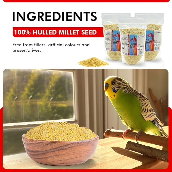 - Mess Free Convenience: Our hulled millet seeds come without an outer shell making it easier for birds to eat while reducing waste and cleanup. Your birds can enjoy the seeds without effort which makes this a practical choice for any bird enthusiast.