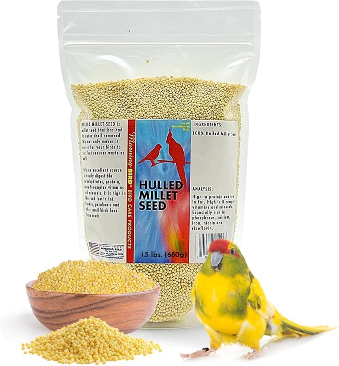 Morning Bird Hulled Millet 1.5 lb – Nutritious Hulled Millet Seed, Easily Digestible with High Fiber, Rich in Vitamins and Supplements for Birds, Ideal Bird Feed for All Bird Types.