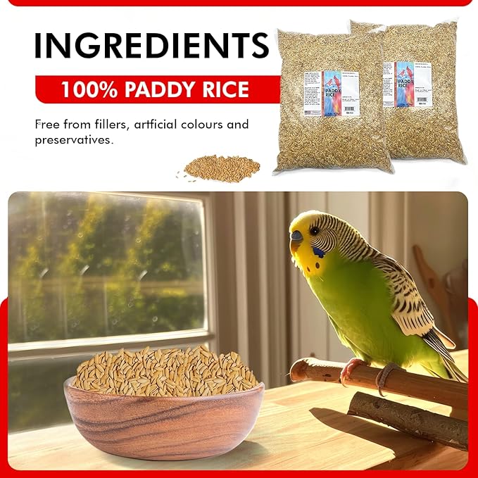 - Supports Healthy Digestion: The natural fiber in unprocessed Paddy Rice bird seeds helps maintain proper digestion and nutrient absorption. This promotes extended health while guaranteeing your birds stay active, healthy and happy for longer periods.