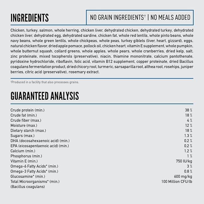 - The first five ingredients are chicken, turkey, salmon, whole herring, chicken liver to provide your dog with a strong source of protein, vitamins and minerals