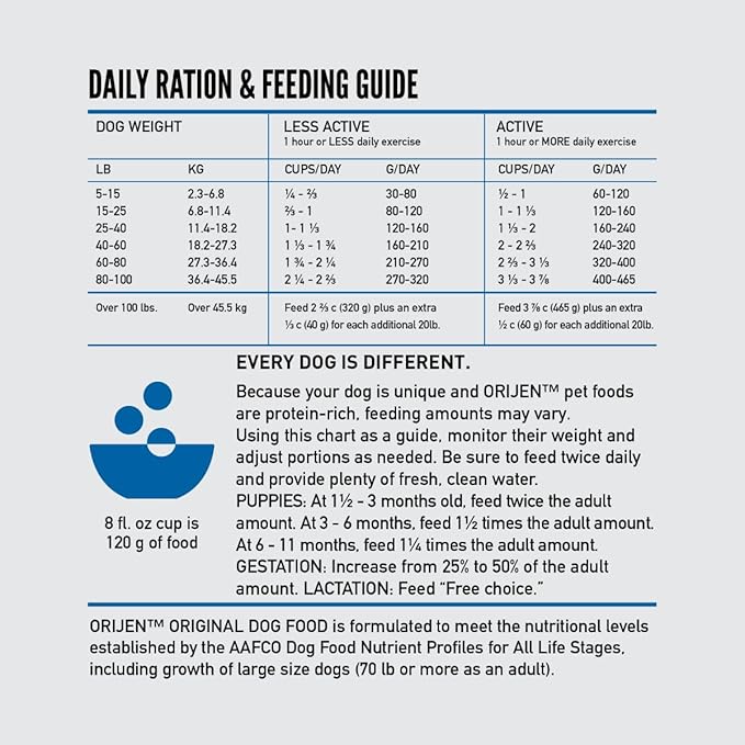 - One (1) 4.5 lb bag of ORIJEN Amazing Grains Original Dry Dog Food