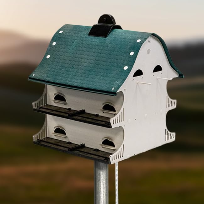 - Rustic Farmhouse Design: The S&K American Barn Purple Martin House features a fun, farmhouse-inspired shape with faux shutters and a green pitched roof, adding a charming touch to your outdoor space.