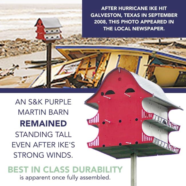 - Easy Installation and Maintenance: Snap-together construction for easy assembly, with drainage holes and easy access panels for nest checks and cleaning. Compatible with the S&K Galvanized Steel Easy Pulley System Martin House Pole (sold separately).